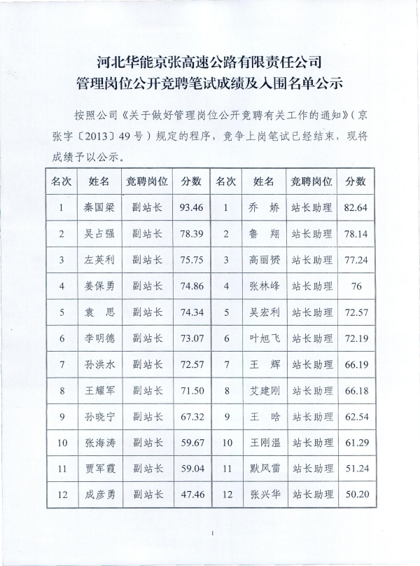 管理崗位公開(kāi)競(jìng)聘筆試成績(jī)及入圍名單公示