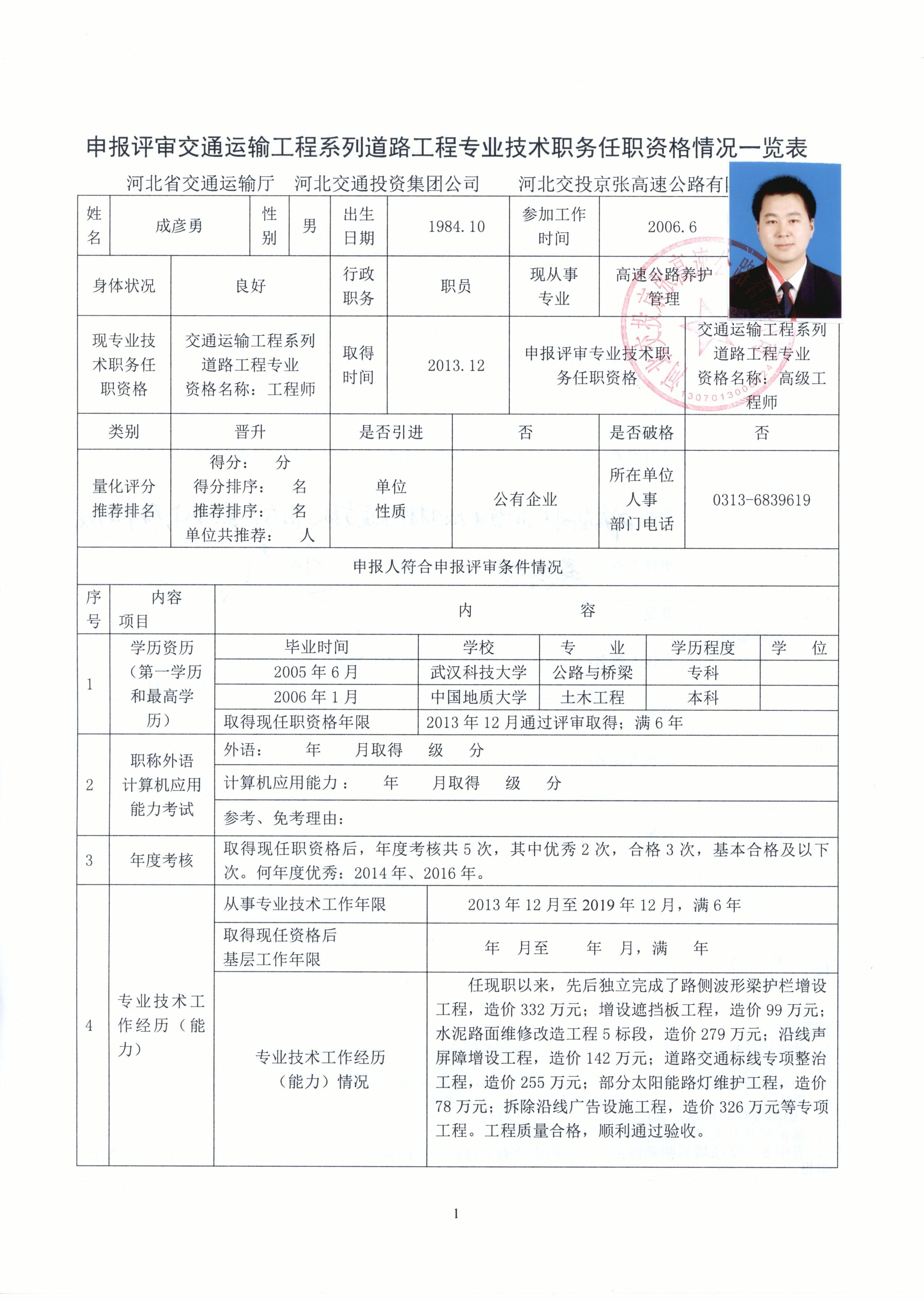 河北交投京張高速公路有限公司2019年度職稱(chēng)申報(bào)人員基本情況公示