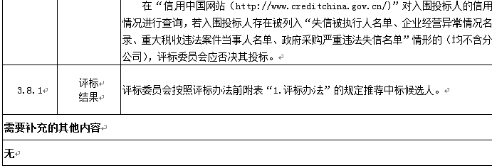 3.4在“信用中國(guó)”網(wǎng)站(http://www.creditchina.gov.cn/)中被列入失信被執(zhí)行人名單、企業(yè)經(jīng)營(yíng)異常名錄、重大稅收違法案件當(dāng)事人名單、政府采購(gòu)嚴(yán)重違法失信名單(均不含分公司)及國(guó)家企業(yè)信用信息公示系統(tǒng)(http://www.gsxt.gov.cn/)中被列入嚴(yán)重違法失信企業(yè)名單(不含分公司)的投標(biāo)人,不得參加投標(biāo)。