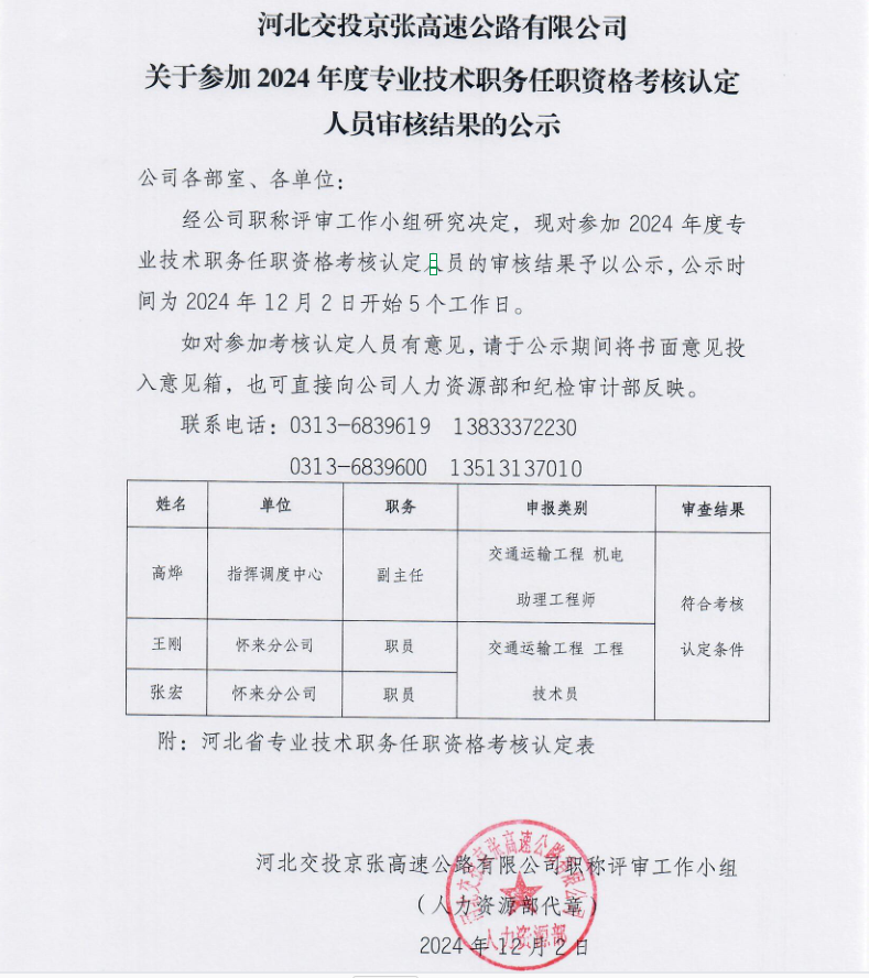 關(guān)于參加2024年度專業(yè)技術(shù)職務(wù)任職資格考核認(rèn)定人員審核結(jié)果的公示